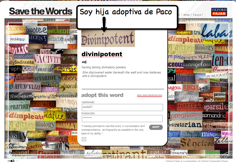 Las palabras me gritan ¡yes, me, me, hello! y uno que tiene su corazoncito se ha registrado y de ese modo he podido adoptar una bella palabra olvidada, divinipotent cuyo significado es tener grandes poderes adivinatorios.