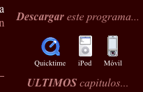 Los programas pueden ser descargados para ser vistos en el móvil, iPod y en el PC en formato Quick Time.